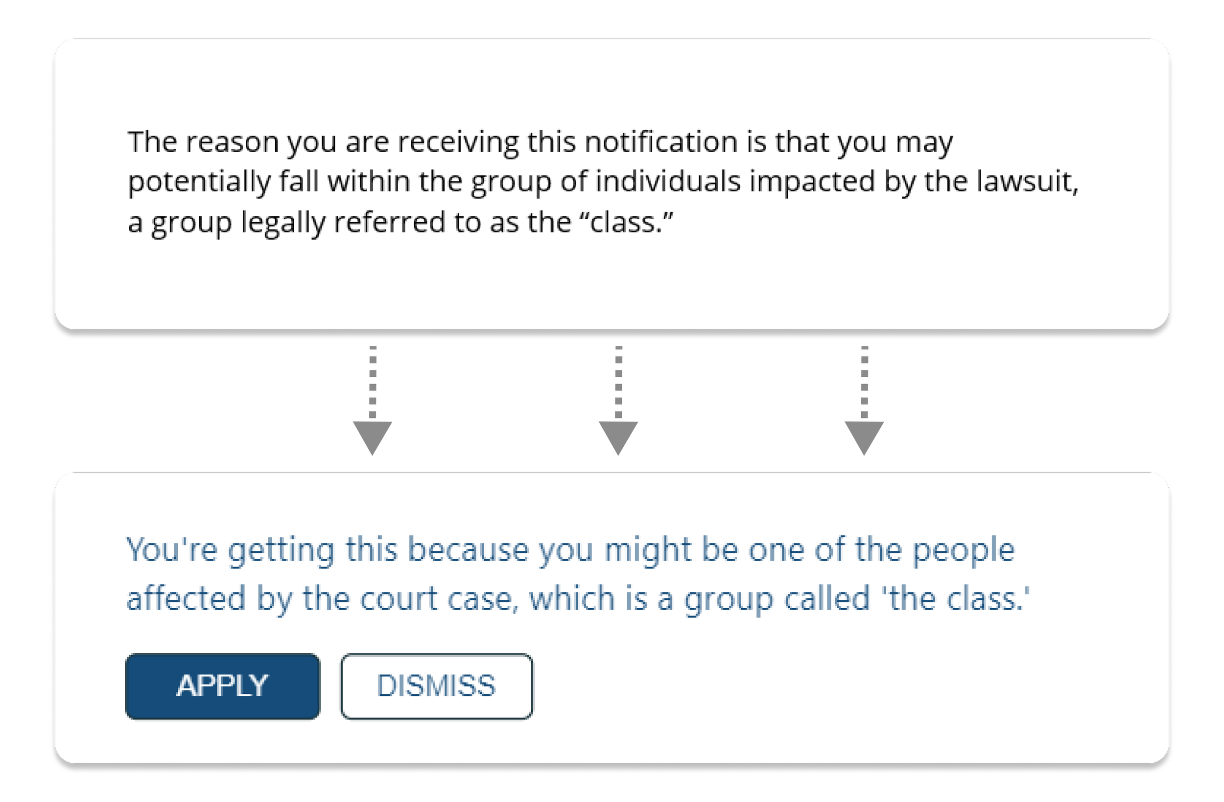 Notice Project templates use improved formatting, visual learning tools, and simplified language to help class members parse complex legal notices.